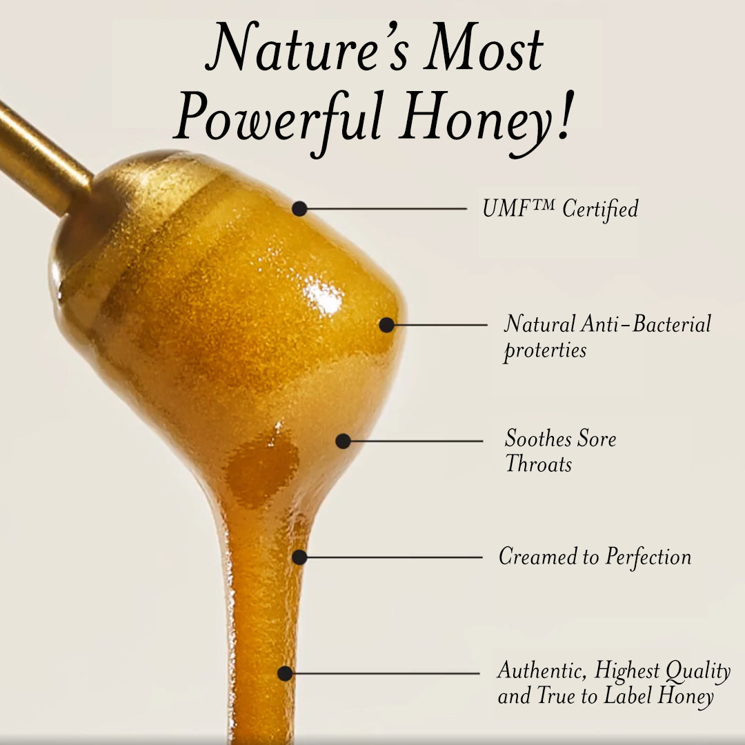 BENEFITS & USES Manuka Honey is one of nature’s powerful wonders. It contains a unique range of beneficial oligosaccharides and prebiotics, amino acids, polyphenolic and other plant-derived compounds. Delicious and creamed to perfection, enjoy adding to your tea, oatmeal, yogurt, smoothie, or simply by the spoon. Great as a morning wellness ritual, pre-workout natural energy source, or as a DIY skin brightening facemask!